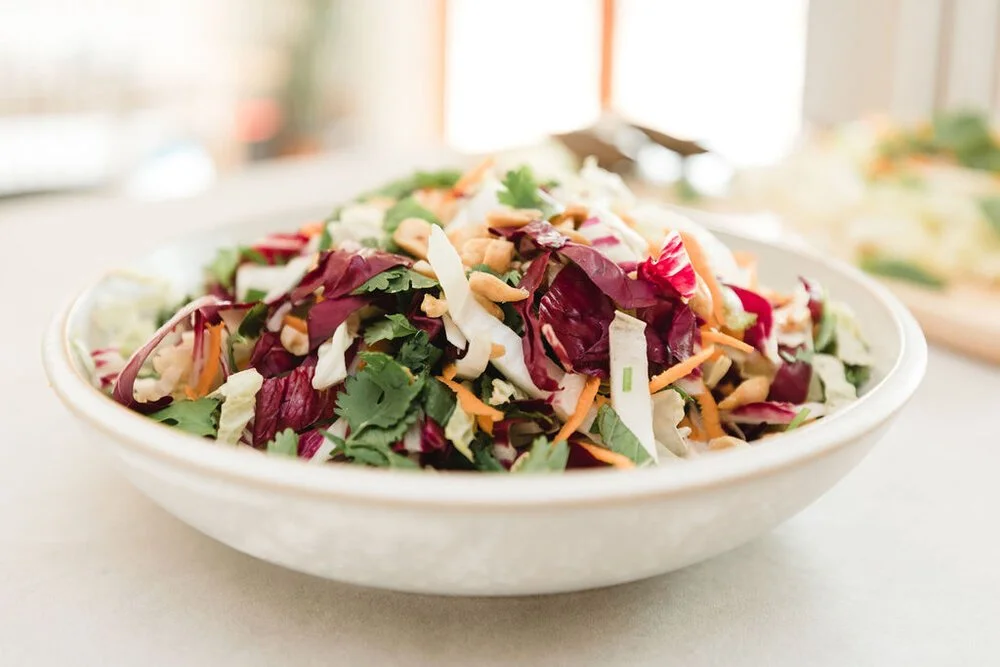 Finish this napa, carrots and radicchio salad with a spicy peanut dressing, and enjoy the flavors of a classic Asian dish.