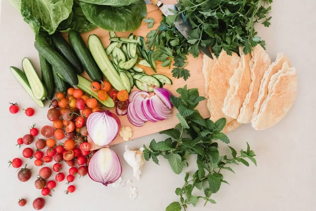 Combine the veggies and herbs with a cup of whole milk Greek yogurt, and drizzle with lemon juice and olive oil.