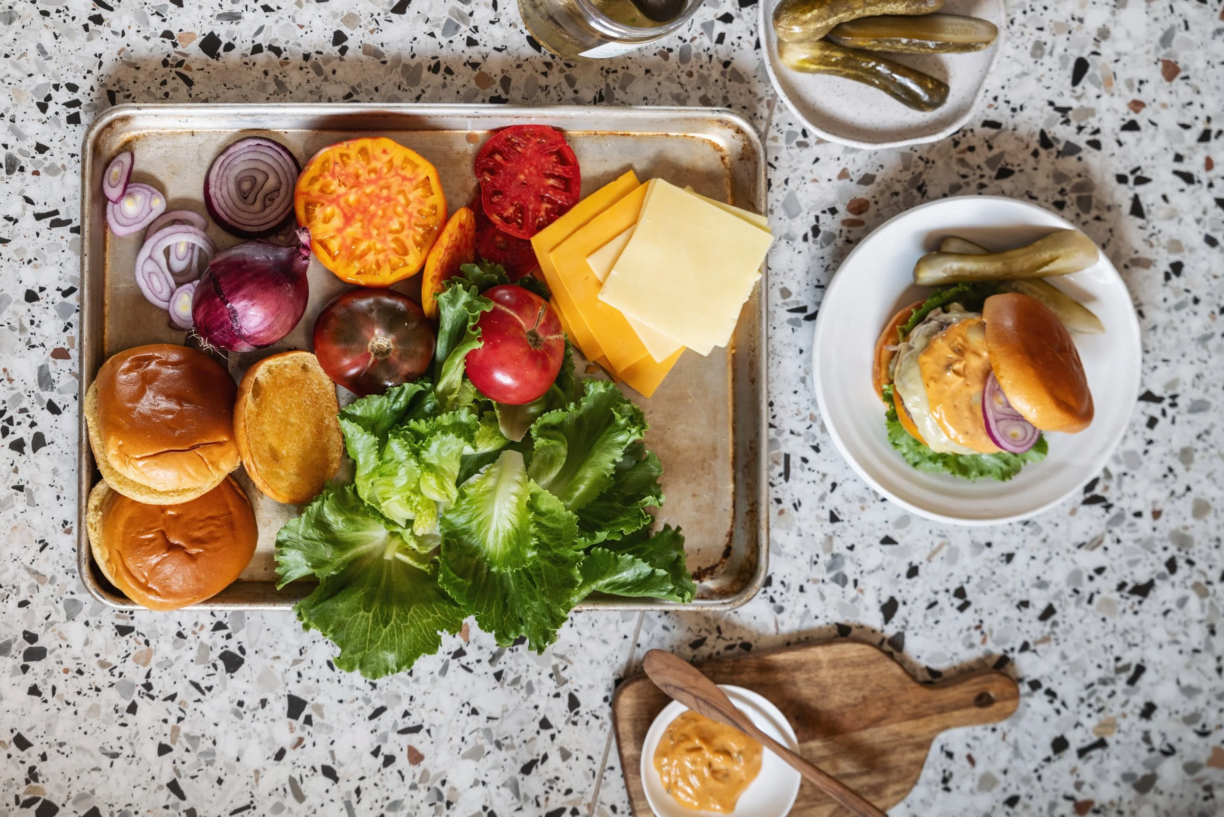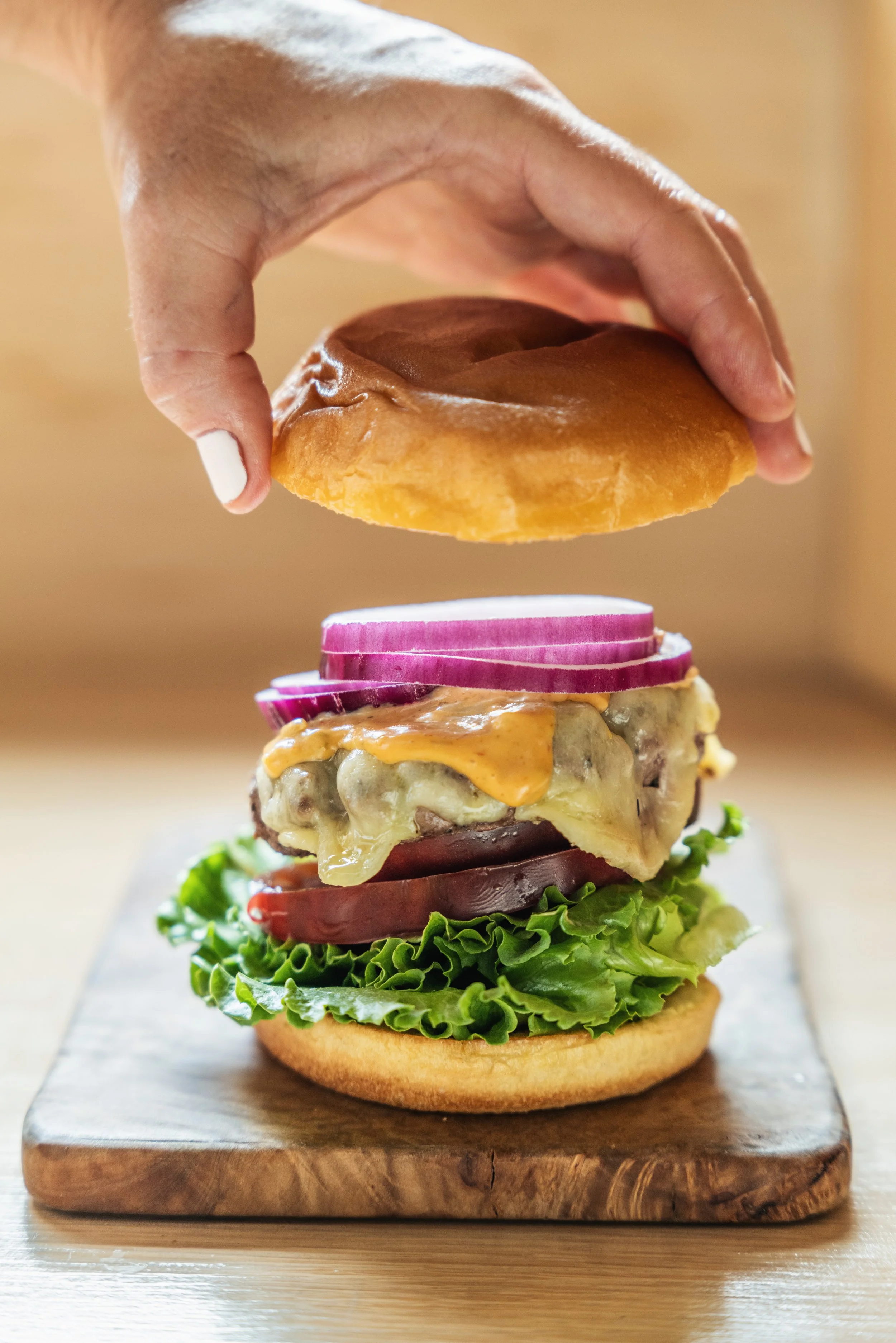 No real recipe for this one, since burgers have so many options for preparation, toppings, etc. We love a grass-fed and finished ground beef cooked medium rare, with heirloom tomatoes, fresh or pickled red onions, and melted cheese on a bed of crisp Supreme Leaf Lettuce.